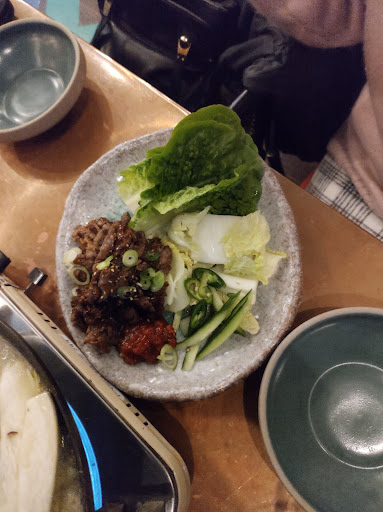 Ā Ā Ā Read moreFor a Thursday night dinner, my family and I of 7 people had the bo ssam lettuce wrap (both bulgogi beef [see image] and slow cooked pork) which had ssamjang sauce for both pork and beef Bo ssam dishes, bulgogi beef stew [image below], dumpling stew [image below], soy garlic Korean fried chicken and kimchi pork with crispy tofu. The bulgogi stew had a solid amount of beef in it, the broth was a tad salty but since I had a drink with it, it kept me wanting to drink more of the broth, super addicting and beefy and underneath was glass noodles so that was really nice. The dumpling stew unexpectedly had tteokbokki which was chewy and soft as well as glass noodles too. As for the kimchi pork and crispy tofu, the crispy tofu was out of this world, crunchy but light and fluffy on the inside. Lastly, the Korean fried chicken although hard to eat and it got real messy, the batter was super crunchy and the sauce was just perfect for having an alcoholic beverage to go with it. Highly recommend the fried chicken, especially if you are having a beer to go with it. They also had makgeolli (rice wine) for $10 for a 750mL bottle so that was banging. The service was prompt and polite. They also gave us takeaway containers for the leftover stew with a plastic bag to make it easier for us to carry it home. Overall the food was exceedingly good, the customer service was outstanding and the cost was affordable for the amount we had. Will definitely be...