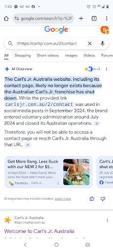Read moreI bought 2 burgers and in both of the burgers the meat patties were so cold it is like they just come out the fridge. I queried it with the waitress after the first bite and she did not know what to say. She said the patties are supposed to be hot and apologised. Did not offer to remake them or anything else. After looking into the kitchen it does not look like there is anywhere to cook them and you can not smell them cooking. It's like the patties are cooked elsewhere, frozen and microwaved to put on the burger. It's pretty impressive on your first visit to Carl's Jr. It is a little disappointing cause if the patties were hot it might actually be a good burger Received your reply Carl's Jr and tried the link you added. But due to Carl's Jr going into voluntary admission in 2024 that link no longer works. We visited 6/9/25...