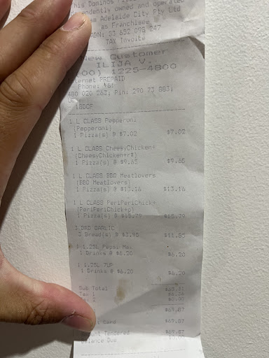 Read moreProbably one of the worst customer services experiences I have ever had from any hospitality venue. Ordered two pizzas and a garlic bread, waited almost an hour before the food had even progressed to "making your order" on the online tracker. One of the two pizzas had its photo appear in the quality control image spaces and I noticed that the pizza was wrong, thought I'd try to help by calling to let them know that it was missing my paid add on's. Was treated so poorly over the phone - being put on hold numerous times, as well as passed around from employee to employee without being told I was speaking to a different person until I asked, to then finally being hung up on. The other pizzas image never came up in the quality control space. After over an hour of waiting the pizza's arrived, turns out the one that didn't have a photo in the quality control space was wrong. Called back and was instantly put on hold for about 5 minutes before speaking to anyone, was offered a drink as I guess "compensation" (look we're in lockdown so we have enough to drink here at home, also didn't order a drink so why would I want one?) and was finally told to return the pizza in order to have it remade (gross, we're in a global pandemic???? Bro that ain't covid-safe). Another hour passes and the pizza is finally delivered, the delivery driver asks for the original wrong pizza back, told him I didn't agree with returning a pizza in the current global situation (honestly had not touched this pizza still at this point besides opening the box to realise it was wrong), he agreed then must have called his manager because the doorbell started ringing again. I was yelled at and threatened by the manager Harash (I have learned from reading the name from the delivery drivers phone as I spoke to him on speaker) over returning this pizza, the delivery driver originally said "so what" to me saying that it was gross to return a pizza during a global pandemic and Harash threatened to leave the store and come to my house to collect it. Absolutely appalling service,...