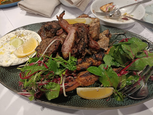Read moreI booked a lunch for 19 people on a Saturday afternoon. At the time of booking I spoke to a lady about having tables outside to make the most of the warm weather and marina views. I was assured they “only do functions outside”. When we came the table was set up inside. The gentleman who served us, Frank, said they only do functions inside. He apologised and said would pass on the feedback. We ordered the $68 banquet with 2 people being pescatarian and asking for seafood instead of the meat dishes. One person eats dairy free. The first course of pita and dips was delicious. We could have done with a lot more pita for the amount of dips. The second course was saganaki and dolmades for the dairy free both of which were nice. The next course was calamari which was delicious but again not enough. We got to have 1 piece each. The main courses were chicken yiros and baked lamb served with roast potatoes and a greek salad. All delicious and so much meat that leftovers were taken home. Those not eating meat were given grilled prawns on a bed of greek salad. Prawns were also delicious but we only got 5 little prawns which is not enough as a main meal. There was only one seafood dish to replace the 2 meat dishes. When it came to desserts they were the typical greek ones and were again delicious. The person eating dairy free got 2 small cups of fruit salad which appeared to have been salted and didn’t taste very pleasant. The staff, especially Frank, were brilliant making sure we had everything we needed. My 7 month old baby made a real mess of their floor and tablecloth and they were unfazed. The atmosphere was great and we almost felt like we were in our own dining room.