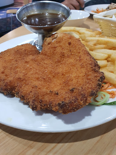 Read moreI was expecting a lot more from the food. We ordered the steak which had zero seasoning, zero fat. Just chewy. Waste of money. The chips on the other hand were good. I like that they offer complementary bread and butter. Ordered an over priced kids meal, pizza in our case which was ok, but not worth $11. The unlimited salad was good. Liked the chicken soup which had plenty of chicken. Great pasta and sea food salad. I liked that the salad bar had water melon. It's a kid friendly place. The place itself is huge but really lacks in the decor department. It's a bit seedy and bogan. I almost never went in as it looks super dodgy. Customer service at the counter was good. The young woman was lovely. David was informative and polite. It's just a shame about their steak...really awful steak. I'm sure the other things on the menu are better. I had a look at the menu and its standard pub food. Kids eat free on a Monday which I wish I had known. Lots of pokie machines. Wont be coming again as I feel there are better places which serve similar food but...