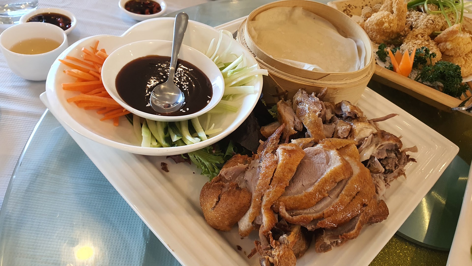 Read moreA friend invited us for dinner to this fairly new chinese restaurant and boy it was really good. The dishes here are balanced and tasty. My favourites are the Nestum Prawns and Cantonese style steamed chicken. The Prawns were crispy on the outside but moist in the inside. We also had the crispy duck with pancakes, crispy beef in peking sauce and braised pork hock. The mango cream was very refreshing with grapefruit, pomelo, sago and mint. Our boys enjoyed their ice cream with strawberry...