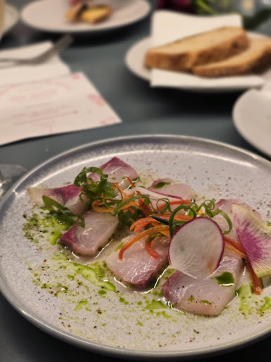 And then... the food. A tale of two experiences. Letâs start with yesterdayâs sourdough crisps, which were apparently left in the oven a little too long. Harder than a brick, a true crime against the very art of sourdough. But moving on! The entrĂ©e arrived before we even knew what hit us, almost as though it was thrown across the table. And just when we thought we could catch our breath, the mains were deliveredâat our requestâright on top of us, in perfect timing with our raised eyebrows.