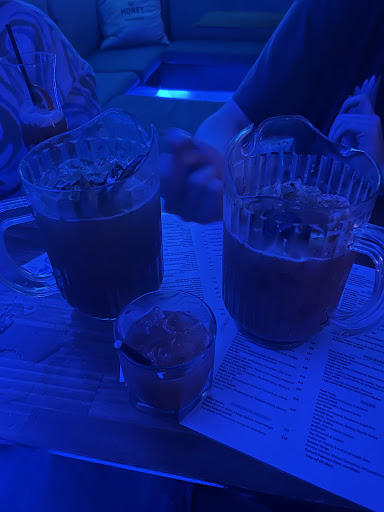 Entertainment is the main draw with old cartoons like Ren and Stimpy are shown at the bar, free game consoles and a kortal combat arcade machine for $1 a play are set up, there are also screens around with wierd adult swim cartoons set up.
