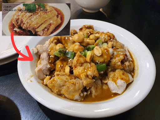 Read moreDid not get what I expected. 口水鸡 - chicken in sichuan chilli oil sauce - flavourless boiled overcooked chicken covered in peanut sauce with no spice. Looks nothing like pic on menu. 滑蛋鸡河粉 - chicken egg gravy hor fun - when is tri-colour frozen veg ever used in this dish?! Peas!?!?! Egg was not " 滑" but instead fried beaten egg that was broken up and then added into the sauce. Gravy did not have a good meaty flavour. Chicken overcooked. 牛腩面 - beef brisket...