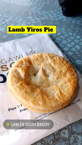 Yiros Pie $6 Made the 96km trip out to Gawler, done some research on Google, seen that there were 4 bakeries in Gawler, sadly 2 had closed down. So went to Gawler South bakery and got a Yiros Pie. For all you non South Aussie's a Yiros is basically a Souvlaki with garlic sauce. The pastry was night and light, had a slight buttery taste, not too dry or flakey, slightly undercooked on the bottom. Biting into the pie I was really searching for that Yiros flavour, it was 75% there, I'm thinking something is missing, I think maybe a bit more of a garlic punch. The mince to gravy ratio was pretty good. I came across 1 piece of steak in the pie. Not too sure if it was meant to have more steak or not in the pie ? The serving temp was good, the pie didn't fall apart. Look, this pie wasn't the greatest, perhaps another type of flavour may have been a different experience.