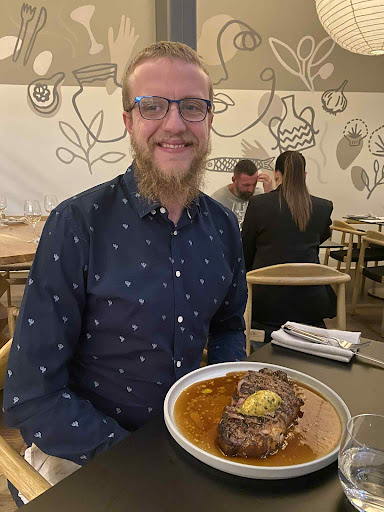 Georges is well known in Adelaide for consistently good Mediterranean cuisine. The menu draws on local produce with European experience and excellence. We decided to share two starters and went with the Hiramasa Port Lincoln Kingfish crudo, apple and shallot dressing, radish, labneh, dill oil along with the Vitello Tonnato, tuna aioli, pickled white anchovies, capers, pickled shallots. The former dish was a revelation in freshness and flavour. The fish was light and delicate. The thinly sliced veal with tuna aioli in comparison was a more substantial mouthful per fork. It also had the crisp texture of the capers and the smoothness of the aioli. We enjoyed both but tipped the kingfish as the winner. For our main course dishes Kathleen chose the crowd-pleasing lamb press, pancetta, chickpea hummus, Mt. Zero chickpea salad, za'atar, and watercress which is known as the Georges signature dish. I chose the 300 gram "Southern Grain" Black Angus scotch fillet (MBS 4+), café de Paris butter. I asked for it to be cooked medium rare. Before I describe these two dishes, the standout main course special for the evening was a 1-kilogram T-bone steak with a marbling score of 4+. It is a shared dish. When informed of this special, my eyes lit up and Kathleen grinned in reaction to my facial expression. We discussed the arguments for and against choosing the T-bone steak, and decided against it. We would swap our plates during the meal we’d both experience a good steak tonight anyway. If we went with the T-bone, that would be all we ate and that seemed limiting for our first time at Georges. I think it was the correct decision. For me, a scotch fillet (or ribeye for North American readers), is a perfect blend of meat and fat. It is also flavourful and tender. That’s not to say a T-bone isn’t full of flavour, but I wasn’t sure if the chef would leave all the fat on the meat the way I like it. At least with a scotch fillet, there is likely to be islands of lovely fat between the large muscle bundles. This decision also meant I could enjoy pressed lamb wrapped in prosciutto. Our whole meal was a meat-eating dream. We can understand why the lamb press is the restaurant’s signature dish. It was well executed in presentation, the lamb was perfectly cooked and tender, and it suited the chickpea accompaniment. The scotch fillet was magnificent, especially smothered in the herb-enriched butter. I laid the sliced meat flat and then smeared the butter over the cut surfaces for greater penetration...