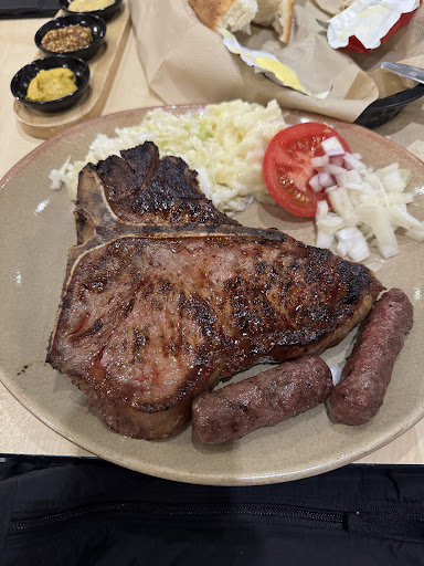 I got an extra sausage (Kobasice) which was a great mix of meat and herb flavours - not dry - tasty. The steak comes with two mini chevaps which were meaty, fatty, morsels. Chips and salad were as good as chips and salad get.