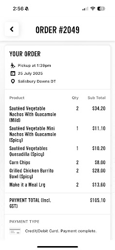 Overall, GYG is a great company, all other locations set a benchmark for food freshness, quality and service, however this Salisbury Downs location needs to be investigated, the staff are incompetent, all occasions at the drive thru, I've seen cars reverse back due to the number of cars backed up costing the company potential customers.