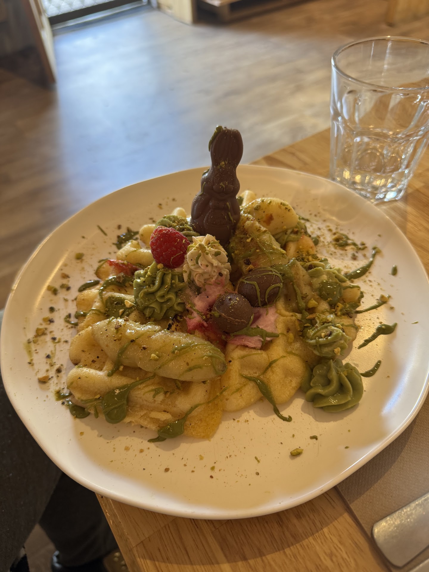 We requested a replacement for the dish, which was supposed to be pancakes. However, what we received was not pancakes but a fritter shaped like pancakes. Upon questioning, the staff insisted that this was your cafe's version of pancakes, which was both misleading and disappointing.