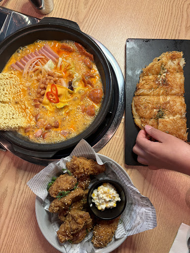 I couldn't take any pictures of it, but I highly recommend cheesy potato pancake. It's crispy and has cheese inside, it tasted super amazing. If you're a fan of spicy food, you must try the spicy garlic pork ribs. It tastes deliciously spicy and it's perfect to eat with rice and cheese.