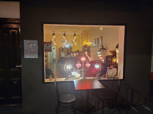 At night, the colourful lights draw your attention to this wonderful Turkish cafe. In the morning, it will be the traditional breakfast menu. Although, I haven't been during breakfast, it's definitely on my short list. At night, the menu is rather small and focused on dessert, traditional teas and coffee. We ordered, and shared, the Kunefe, which was really good and to eat one on your own could be a struggle. Traditional coffee and I had the Turkish apple tea. All really good. Although there weren't many people there, this has the potential of being a great late night hangout. The traditional music was kind of trance-ey, melodic and really set a great vibe. I can really imagine spending time here on a comfy lounge with great food and traditional teas. There is a late night menu on it's way, or so I heard, and that would work really well. The owner is very friendly and welcoming and makes you feel at home with her easy going nature.