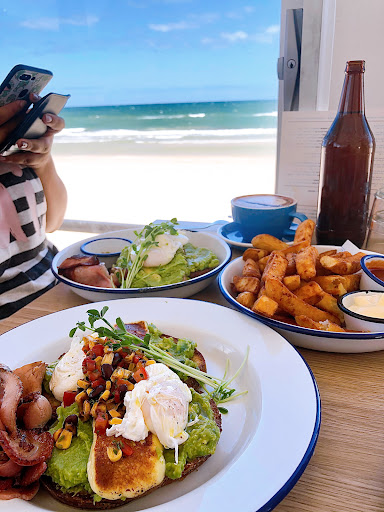The coffee was excellent and the juice was fresh. The setting is fantastic and the team work hard in a busy environment, doing it with a smile. They also offer a lunch menu that features some of the breakfast favourites along with typical beach side lunch choices like fish ânâ chips, tacos and burgers.