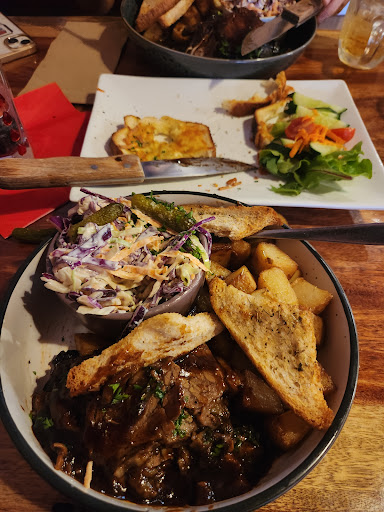 Read moreSo here's a fun adventure, such a shame this place used to be great... it started pleasantly, joke with staff, laughs, chuckles and banter, seated... ordered the well known trifecta meat meal & my dinner associate ordered a rump steak, both steaks as medium.... fast forward 35mins, our drinks were served, 4 lots of "yours is coming out next" by the waitress and 30 more minutes our meals arrived... this is where the fun begins... cut into my steak part of the trifecta and more blood than a fresh out the gate teenage girl come gushing out of that slice, lucky though the paper layer & the wooden chop board did a swell job of soaking up the bloody mess, chicken that used to be breast tenders were now thighs that were so oil filled America tried invading my plate as I cut into them, rib rack was on point, small win hahaha mid meal they randomly dropped of a plate of mixed cooked veg, as a "freebee", the said "cooked" veg was so raw my still alive steak almost started grazing on them.... so as my tooth almost shattered on some "cooked" carrot I looked up to my dinner associate to see his utter dissatisfied face as his steak was well done/medium/rare/blue all in the same piece of served meat, I mean as talented as that is, it shouldn't be that way hahahahah as we went to pay n leave we expressed our disappointment, to be told sorry, no discount, even though we didn't even ask hahaha then we paid our bill n left, on the drive home it then clicked we had be also over charged, on deeper investigation, they added the veg to our bill.... what dogs... will never return to this...