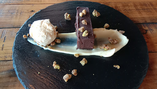 For dessert I ordered the chocolate torte with salted caramel ice cream and pistachio nuts and man what a tasty dessert could not fault it and all the flavours mixed together well and a real star dish.