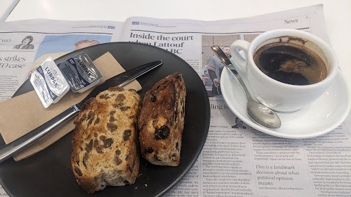 Read moreAfter buying the last AFR paper today (7.20am Thursday) at Foodland, I stopped in at Kicco Cafe (it's in front of Foodland). The cafe was really buzzing with tradies getting their 'starter' for the day - but the service was quick, and toast n coffee was quick - considering. My Fruit Toast (see photo) was really good - even if a little different, thickly sliced small loaf - even if one of the two slices was the 'bum' end of loaf. And the long black coffee was good. (By 7:50am, the tradies had left and the cafe is...