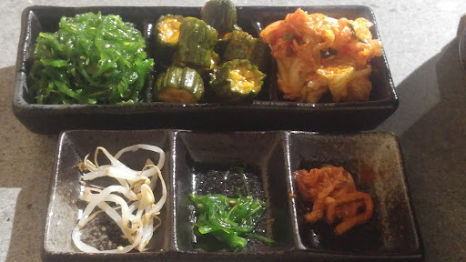 Read moreWe ordered the Assorted Kimchi, Premium Japanese and Australian Wagyu Platter, Wagyu Ribeye, Pork Belly and Grilled Misoyaki Kingfish. The Assorted Kimchi was a bit disappointing as it only consisted of a seaweed salad, pickled cucumber and standard kimchi, albeit they still tasted OK. The pork belly was a standard cut you could get from the butcher so nothing to rave about there. The kingfish was a tad overcooked, however it was delicious! The smoke in the fish went really well with the fruit sauce (mind you, I've never been a fruit sauce person) and the slight peppery-ness from the raw radish went well with the oily fish.