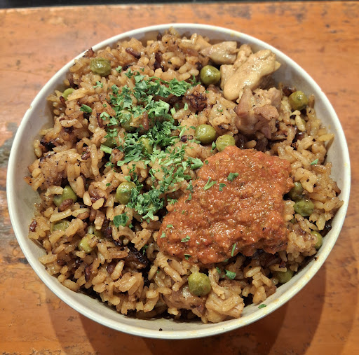 Read moreHaving never been able to eat paella, due to the normal ingredients, I asked if I could try a small spoonful of the vegan option as the lunch serving size was rather large. Given the friendly nature of marketplaces I did not think this would be offensive. The owner did begrudgingly agree whilst making his disapproval very clear. I would never have asked if I thought it would elicit such a response. My partner ordered two paella, one chicken, one vegan, for our lunch. They were quite nice. We went back later to potentially buy some spice blend mix. The owner asked me if I could read. And then asked me to read out a couple of signs saying how great his food was. He went on to name drop people who had eaten his food. His manner was INCREDIBLY patronizing, arrogant and misogynistic. We left in absolute disgust! I have never ever left such a review before. However, the utter rudeness displayed by the owner has forced my hand. The food was fine. Award- worthy? Probably not, but nice for a casual lunch at a market. The lack of professionalism and manner from the owner, on the other hand, guaranteed that I he has permanently lost at least two customers and any possibly...