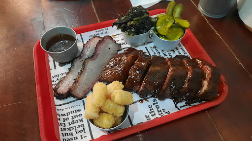 Our experience here got exponentially better when the fantastic waitress (Mao we love you! :D) warmly welcomes you and patiently takes your order (it was our first time here). As we were not big eaters, Mao carefully suggested the right food portions for our dinner. And we were very glad with the portion when the food came. On our tray came a portion each of their beef brisket, smoked pork ribs, tater tots, bread & butter pickles and the collard greens. Food was above delicious and definitely satisfied our massive BBQ cravings. Both vege sides were perfect, especially the collard greens which help to freshen up your palate after every few bites of their wonderful meats. The tater tots were a nice touch to the meal and they were just the right amount of crispiness on the outside and softness on the inside. All these was then chased down with the lager which was nice (ended up having 2 pins).