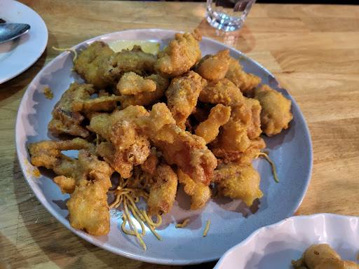 The 5 of us shared a large claypot rice, combination crispy noodle, salted egg soft shell crab and deep fried sliced barramundi with tamarind sauce. Good portion of food served and reasonably priced.