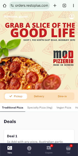 The staff were outstanding, incredibly attentive, and made us feel right at home with their warm and friendly service. The owners have clearly poured their heart into this place, and it shows in both the quality of the food and the welcoming atmosphere they’ve created. Mod Pizzeria is truly a gem, and we can’t wait to visit again. Highly recommended for anyone looking for great food and an exceptional...