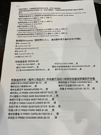Read moreHotpot place with a hefty price tag for the soup base. About 4 in a group for a hotpot makes it more reasonable. Then select your own food (sticks) which makes it customized to what you prefer/want. Still pretty expensive for a self-service meal with pretty limited variety of food. If you're the adventurous type you'll find only a few uncommon cuts...