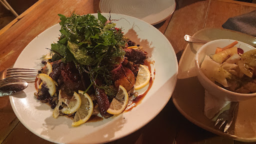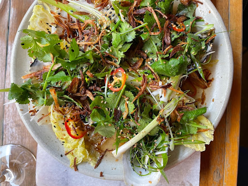 Food Highlights: We began with olives and focacciaâhow deliciousâand we devoured them! Then came the banana blossom chickenâtender and fragrant, served with chilli jam and coconut salad. Every mouthful was layered with textures and spice. Perhaps the standout was the pork belly with prawns, peanuts, and Asian greensâa masterful balance of rich, sweet, nutty, and umami, rolled in herbs and sauce. Also, try ordering âsmallâ platesâwhich are actually generous âlargeâ sharesâperfect for sampling a variety.