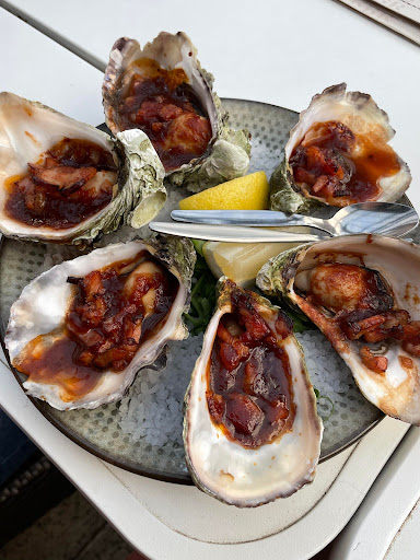 Our bottle of ssparkling arrived in an ice bucket and we poured the wine ourselves, because the deliverer had disappeared. Conversation ensued and it was only when I was emptying the last of the sparkling into a glass that I noticed we had been given a bottle of Croser, not Bird in Hand. By now the very large table was crowded around the bar ordering food and drinks, so we decided not to wait twenty minutes to raise this with the bar staff.
