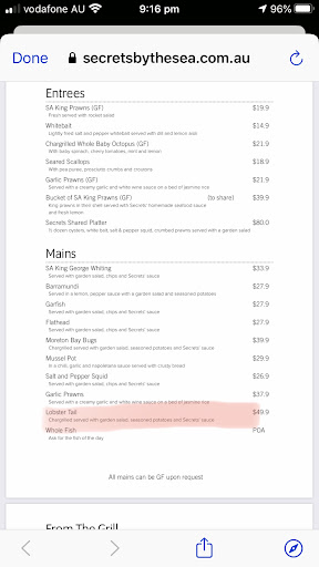 Read moreSome good, some bad, but mostly disappointing. I booked online and requested a window seat so we could watch the sun set, and advised it was my partners birthday. When we arrived we were seated in the middle of the restaurant and there were 3 vacant tables by the windows. Advised staff that I had requested a window seat but they wouldnât budge. The other parties arrived approx an hour and a half later when it was pitch black dark. We accepted our seats and it was freezing. We were so cold and asked if we could move. They were booked out so we asked if they could turn the aircon down but they wouldnât. Later a party of 4 ladies arrived and sat at the table next to us. The first thing they did was complain it was too cold and asked them to turn aircon down. The food- the oysters were big and delicious, the scallops were also cooked well and delicious. The kingfish sashimi was a rip off. I had seen it on their website and knew I was going to order it, however it was one quarter of the size of the image on their website. The worst part was we ordered the 300g scotch fillet with seafood sauce. Both of our steaks were tough and difficult to cut through. Very disappointing as we expected it to be tender for the price point. Unfortunately weâve had better steaks at common pubs. We didnât bother complaining because our other concerns had gone unheard. Disappointed after spending a few hundred dollars on a bad meal and uncomfortable atmosphere.