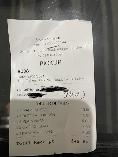 Read moreMy experience with Spice Heaven was sadly horrible. On 7th September I had book a table for two at 9:30pm online. I had also received confirmation mail regarding the same. While on the way to the restaurant, I noticed that I had a missed call from the restaurant and called them back. When I told the person who answered the call that I missed the call, she mentioned that she did not call. Well, her response was not appropriate and her tone was as though I was wrongly accusing her. Then I asked her if it was anything regarding the booking I did. Without asking me to hold on the call she started to speak to someone else. Absolutely did not have even the basic courtesy. Then, someone else started to talk to me in a different language that I didn't understand (guess it was hindi). Why would you establish a restaurant in Australia and answer your customers in hindi? Well, eventually she spoke in English after I told her I didn't understand. Finally, when we went to the restaurant we just had to stand unattended for few minutes. No one attended to us, showed our table or anything...... Finally, to save our sanity we walked out to not endure further horror.
