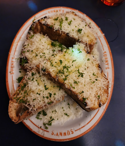 Now, you might be thinking, “Is this worth it?” Yes. Yes, it is. Because Sunny’s has garlic bread. Not just any garlic bread. This stuff deserves a Netflix special and its own line of scented candles. Wood-fired to crispy, buttery perfection, it somehow manages to both comfort your soul and clog your arteries—just like grandma used to make (if grandma was a hipster pizzaiolo with a wood oven and a DJ booth).