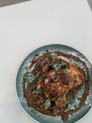 Read moreThis unassuming small corner cafe is a lovely surprise ! When it’s cold and it rains , your thoughts turn to food . It was by chance that my friend and I found this place and went in to try . It was only after we parked nearby that he remembered he’d been here before and had had a lovely experience . The Flying Fig is apparently modeled after a NY Jewish Deli ( not that I’ve ever been to NY) . When we entered , it was warm and cozy , with a lovely aroma of coffee mixing with spices . The server was prompt and all smiles , told us to choose seating and followed us with menus to a small wooden window seat . My friend had already eaten , but ordered a small banana cake , with a side pitcher of cream , just right for a wet Winters afternoon. I ordered an iced almond latte - the coffee was a dark roast with a slight fruity aftertaste. I forgot to ask which blend they used , but it was pleasant. The menu was a little different to ordinary cafe fare , and had lots of dietary options. I ordered the smashed avo with poached eggs, but the difference being that instead of the ordinary toast, it was stacked on a sweet potato latke , which was so warm and crispy on the outside , and soft and sweet inside . The eggs were perfectly cooked , with runny yolks , and the smashed avocado and hazelnut dukkah helped round out the dish . The surprise element was the Manischewitz wine reduction ( which apparently is a non alcoholic Jewish wine , which tastes like a cross between maple syrup and honey , and complimented the hazelnuts)In addition, it was plated beautifully. I really loved this dish . The owner was so happy and friendly; he came to the table and ready to explain any questions that you had about the menu . Definitely need to come back and try the French Toast - which has a gluten free option . I saw it at someone’s table and it looked amazing. If you are getting a little tired of normal cafe fare, give this...