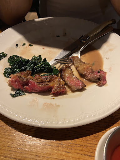 What we ordered: 📌 Grilled octopus - a good starter, not rubbery, delicious BUT could have been better if WARM. 📌 Bone Marrow - delicious! 📌 Popcorn cauliflower - my fiancé and I are 50/50 with this one. I liked it, he did not. 📌 Duck fat chips - the renowned chips: not impressed. Too salty - nowhere near good as Soto’s. 📌 350g Roam Wagyu Scotch Fillet: ordered blue to rare: Disappointing (shown in the picture) - thought it would be marbled like what wagyu is supposed to be like but nah, nothing special. Waste of $72. The peppercorn sauce was watery in consistency. 📌 250g Mayura Station Wagyu Rostbiff: I ordered medium rare with porcinni butter. Order came through, it was COLD. When I put the butter on top it didn’t melt instead, it just laid there. I asked the staff to try it, she agreed that it was indeed cold. They sent me a new one, this time was warm and the butter actually melted BUT it was rare 😂 I just went on with it because it might be a longer wait for a new serving. Can’t complain as the manager said it is on the house.