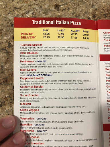 Read moreTypical takeaway pizza, done right. The worst thing about this place is the parking. Large variety of pizzas. The pizza is thin crust, slow cooked so no extreme yeasts or loads of sugar. Large variety of pizzas, include a number of meat options not just ham. The chicken is actual chunks of chicken not cubes of potential meat. Ordered a periperi chicken, the sauce was added after pizza was cooked, so it wasn't dried and mouth burning. They do those little things right. Though the garlic bread had an odour as if the butter was left next to fish? Though no complaints as the bread was free. Defiantly check out the meal deals before ordering. These guys also have thier own app so use that...