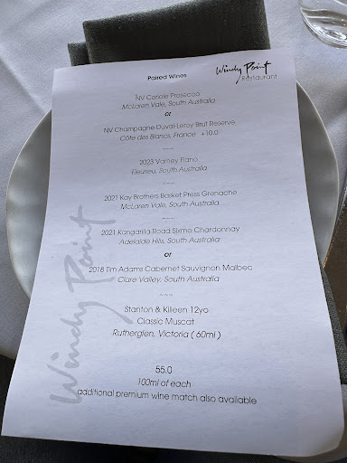Menus have become boring and predictable. I almost knew what would be on the menu before I got there. There seems to be disinterest in the menu formulation and the kitchen seems content to keep pumping out the same formula. Year after year. Take a look at how Adelaideās menus have moved on and change. Itās boring. The bill was predictably very high. I felt dissatisfied with the ambiance, service and food. The maĆ®treād didnāt even attempt to ask for a tip which is customary at Windy Point. I wouldnāt have paid it anyway.