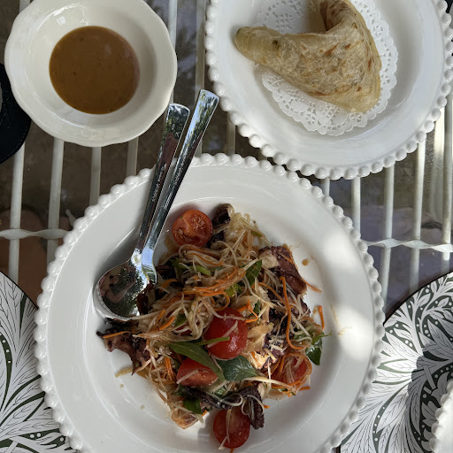 This place had such a great vibe, we had dinner here and absolutely loved it. The moment you step in, you’re wrapped in greenery and candlelight, and even though it’s winter, it still felt super cosy. Overhead were a couple of stunning crystal chandeliers that just added to the atmosphere. The restaurant’s run by a lovely young couple and the service was super attentive and friendly. We ordered the spring rolls, grilled prawns, Three Cup Chicken, a Southeast Asian-style curry, and a dessert with rockmelon and ice cream. My favourite was the curry, the balance between the creamy coconut and curry spices was spot on, perfect with rice. The chicken in the Three Cup Chicken was super tender too. And the rockmelon was so sweet and soft, paired perfectly with the ice cream. It’s a perfect spot for a date night. We’ll 100% be...