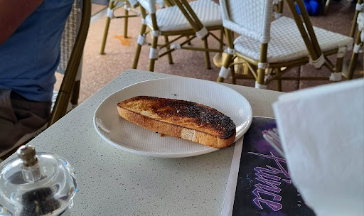 I received a burnt slice of toast, which there was an attempt to cover with poached eggs. Upon asking the wait staff (male with arm tattoo) for a new slice, he told me sharply, "That's not burnt". Surprised he'd dismiss it - honestly what's a thin slice of toast to replace, I again asked for another which was not burnt. He responded smugly, "So you want 3 slices of toast?". I let him know, no, I'd like one that isn't black just like the other slice underneath. He came back with a new slice, threw it on that table and said "so is THIS better for you?". I was in utter shock of the condescending attitude. The new slice of toast didn't even come buttered like the original, they really put in the least effort possible. Imagine not only messing up toast but then being pretentious about it.