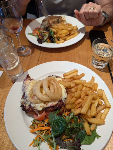 Read moreRecently restored and renovated over 150 year old Hotel on the main Street of Alexandra. We had lunch on Tuesday and it was slightly busy. We got served quickly by a friendly waiter in the attractively, though modern, renovated dining room. Quite a few modern Oil paintings and Artworks on the walls which add to the pleasant atmosphere. We ordered a few Entrés and mains as we were all hungry. The Smoked Trout Bruschetta was excellent as was the large serve of Chorizo in Apple Cider. The Chorizo, though tasty, really needed some bread to go with it as it's quite heavy. Unfortunately we were all disappointed in our mains. The serves were large, attractively plated and the famous chips were delicious. But both our Schnitzel Parma and American Schnitzel were not Schnitzel! Just a very large, VERY thick slab of crumbed Chicken breast. A traditional Schnitzel is a large, thinly flattened piece of crumbed meat. Quite a few pubs are doing this thick style of Shnitzel now, I'm not sure why, as the traditional, large flat piece of crumbed chicken, almost hanging off the plate is far tastier with a better meat/crumb/topping ratio. Ingredients were excellent but the amount of bacon, cheese and tomatoes toppings on my Parma were just not enough leaving the chicken too dry. Ditto the American Parma. My wife had the Vegie Burger which again was massive. She left quite a bit of it as she didn't really like it as with the sweet Brioche bun and toppings it was way too sweet, but that might...