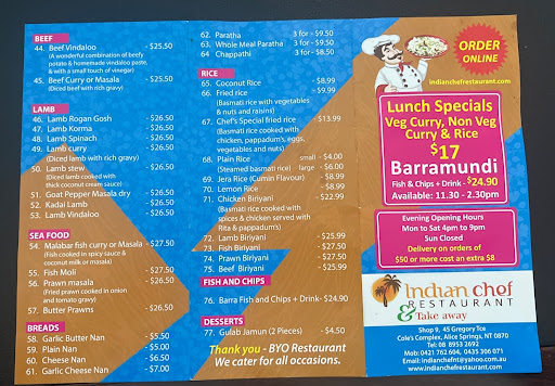 The chicken biryani just had three small pieces of chicken for $18.50. I thought the chicken would have been shredded and combined in the rice to make a flavoursome dish. The moli fish curry didn't have enough fish for $20.99. The half decent dish was the lamb curry at $20.99.