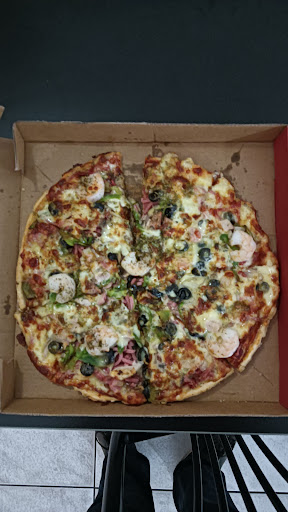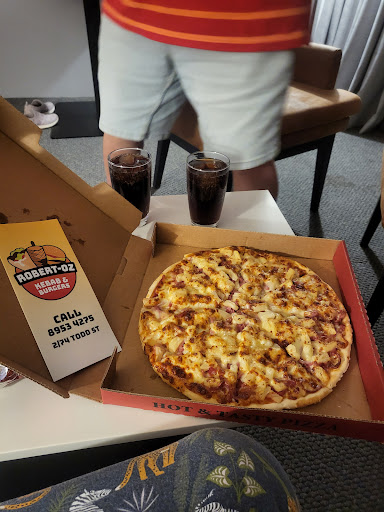 Pizza with the lot! And it was a LOT. This was the best pizza I have tasted in a very long time. This one had a crispy base, toppings galore including 6 huge prawns & I could not have asked for anything else. I walked from my motel ( about 400 metres) to order it. I waited probably 15 minutes until it was placed in the box to take back to my room. The restaurant is on Todd street & it can be a bit daunting to run the gauntlet of Aboriginal youth standing around as you walk into the place. Inside are a few bench style tables & one with chairs. The decor is, to put it mildly, 'graffiti ' on the walls in the ' dining area.' It is not a place I would feel comfortable sitting down to eat but the pizza was the best & the young lady who served me was lovely &...