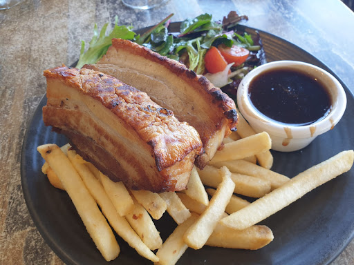 Service here was appauling from front of house, to meal delivery to exit. It's such a beautiful view from the inside but that's about it. The dirty self serve water cooler is disgusting and looks like it's a hand wash station for a port-a-potty. The pumpkin salad was ok once you found the pumpkin and tiny pieces of chicken amongst the mountains of spinach leaves. The raisins were probably the best part of it. Presentation was poor. The fish was not very nice either, I think the take away shop down the road does better. Kids meal overcooked or just bad oil... this was our first time here and never again.. we were so excited finding this place and thought we found a gem here but it ended up being a really rough diamond in disguise. So disappointing with our visit here not only with the food but especially with the service .