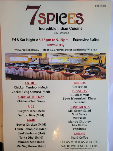 Read moreDELICIOUS FOOD AND AMAZING PEOPLE We know the owners of restaurant for few years now. Arun and Thatcha are so humble and courteous, their food will make feel home. Let me start by saying the food is just to die for, I personally like everything from starters to Main course to desserts. Mix platter of starter are quite a variety we tried. Their Ambur Lamb biriyani, the lamb was so juicy and perfectly cooked. Sagoo paysa (sweet) reminds of home. Chennai Lamb curry smells sooooo good, we could eat with rice or chapathi, just amazing. They catered for our family party, Guests did’nt stop complimentating the Lamb biriyani, palak paneer, butter chicken, those yum onion bajji and mouth watering chicken kebabs and yummmm Jamun. Thank you so much for your amazing hospitality, fantastic food and location is just perfect to eat out. One word to describe 7 spices restaurant...