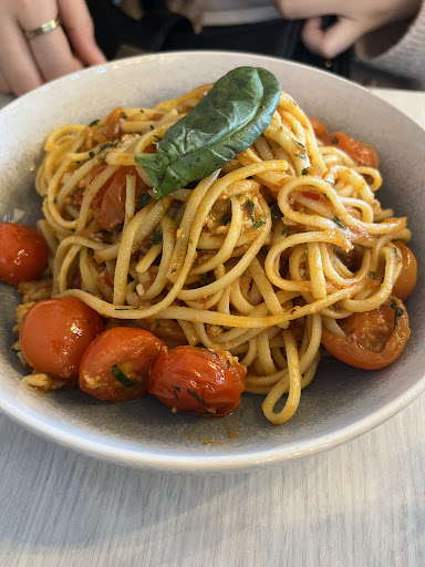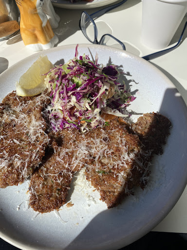 Read moreDelicious and delightful. A tempting array of choices on both the regular menu and the specials up on the board. My Italian hot dog with chilli onions was awesome. The twice cooked pork and fennel sausage offered a hit of the advertised fennel without being overpowering. The sausage itself almost fell apart on the fork but managed to retain enough integrity to suggest a fairly coarsely ground meat. The sausage was well longer than the bread roll. The accompanying fries were hot and crunchy. My only reservation was that the bread roll itself was extremely crunchy if not actually hard, so it was difficult to eat. My only negative in a well put together dish. The peppermint tea was hot and fragrant. My friend's meatballs on polenta fingers with sugo was equally delicious - made me almost wish I'd ordered it too! She endorsed the coffee which is high praise indeed. Finally the flour free chocolate cake was to die for! It looked moist and suggested heaviness but, while it kept together on the fork almost melted in the mouth with a lovely hit of chocolate. Yum! Prices were definitely competitive for the area, service was excellent and parking whilst challenging at lunchtime was feasible. Totally...