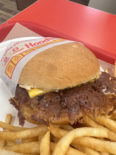 Originally we loved the burgers here but sadly the food is really inconsistent. The chips portions range from generous at 2-4 servings, to pretty stingy at a single serving at best. Often the chips are way too salty. The first few times we ordered it wasn't very busy and the food was amazing, the burgers were cooked perfectly and crispy patties, chips were generous and not too salty - 5 star. But the last few times it has been really busy in the restaurant and there have been significant issues. My burger patties were pink in the middle and not crispy on the edges, they tasted bland and soggy. Also, they missed the mustard altogether and the buns weren't as soft, maybe slightly stale? If this was my first time, I wouldn't go back. The time before that they got our order wrong completely - this isn't really a big deal as it happens, but worth mentioning. Also when I asked for extra pickles the guy serving me looked at the computer for ages, then didn't say anything further. I wasn't given any extra pickles. We'll be giving this Hood a break for a while as we are put off after the last few...