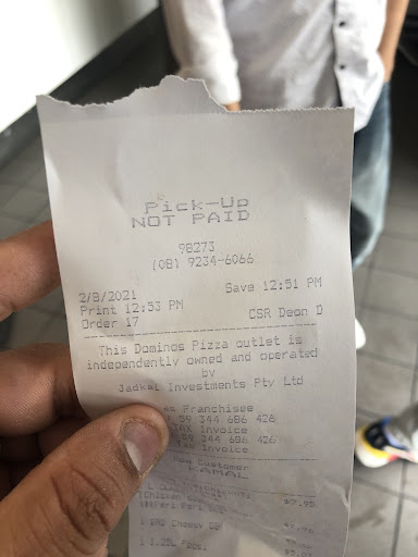 Ā Ā Ā Read moreThis was the first time Iād been to this dominoes in 10 years. I ordered online and went to pick up my order. The young girl at the counter couldnāt find my order, said It was out the back, but was sure it was ready. I waited for maybe 10mins. Then a young man asked me for my details and what pizzas I ordered and determined that my order had been left on the warmer without a receipt and so was dispatched by a delivery driver. He offered to make another one at no charge, so I waited another 15-20mins and then the same thing happened, they lost my order! I gave up after that and left without any pizza. The young man gave me a few garlic bread and some vouchers for pizza. I overheard the man in-front of me being told his order was made wrong so they had to remake his. It just seemed like a clown show in there and I felt sorry for the young staff who were clearly stressed and poorly trained. Iāve had dominoes all over Australia, Iāve never before had this level of service.