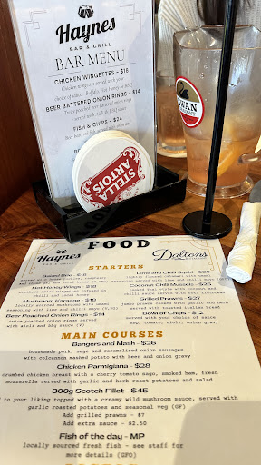 Read moreBack in the metro after a few years in the bush, so time to revisit some local pubs and find a new watering hole. Were at Haynes Bar and Grill a few years ago and found the food and service then to be very average, but times change (or so you would think) so gave it another go Sun night. Partner waited at the 'wait to be seated' only to be welcomed with 'youre gonna have to wait you know' from a lady with pigtails.. Ok great start. Served at bar for a couple of drinks, delivered as requested, hey smile girl, its hospitality! Finally a friendly happy server in the restaurant, by way of a young blonde girl, (well done you!). Scotch Fillet, pepper suace, ribs, cheese garlic bread. Steak was average at best, not the greatest cut of meat, was cooked ok, pepper sauce was tasteless, watery and minimal, ribs were just ok, garlic bread - well top peices were good, bottom peices not so much as their topping was stuck to the bottom of the top peices leaving soggy bread devoid of topping. Plates still sitting on table when we left. Desert, not offered. Very average food and seevice for around $90 for 2. No this will not be the new local and no...