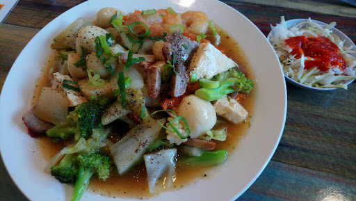 Read moreWent there about 11.15am. Only a watery Chicken Curry and Bean shoot fried with hard cubes of Taufu was in the Bain Marie. Cost $12.50 to dine in. Quantity served was reasonable with two large pieces of Chicken and 2 quarters of curried Potatoes. On side table were Chilli, sauces, etc which was self serve. Water was served in clean bottles and glasses were clean and so were the cutlery. Overall Cafe was clean. Other foods needed to be ordered off the menu. Prices were reasonable. The rest of food was probably was not quite ready. And some had to be assembled on order. The Chicken curry was lacking in quality and taste. The one staff was friendly but understanding of queries was poor. There was no shortage of customers...