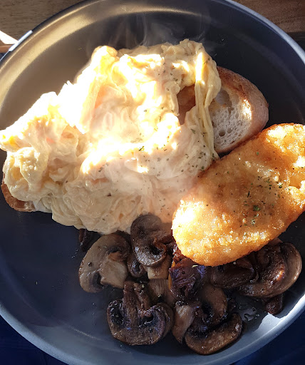 One of the few options open at 0700am. Scrambled eggs on sourdough with extras of a hash brown and mushrooms...scrambled eggs were first class...perfect and the experience will be hard to replicate. Yum. The other dish were the edamame and corn fritters. Definitely this had an oriental twist with the addition I think of five spice. Very nice, different but the spice was a little overpowering but the dish was beautifully presented and it was good to see something different attempted. Service was very friendly and the chef was a delight. HIs kitchen was open to see and was clean and tidy. The cafe had a nice atmosphere and was also clean and tidy. The background music I have to say was just that and for this I commend them. Listen of you want, but you are not forced to take in some other persons...