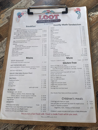 My husband and I have enjoyed The Loot Cafe many times and the last time we were there was just a couple of hours ago. There's so much to say about this cafe but in a nutshell. .. It's wonderful! From the service, the great quality food, the ambience, Gluten free options (including pies and pancakes!) and reasonable pricing, it's just great. The owners and staff are so nice and the place is always clean. I say to all.....Try it...I doubt you'll regret it! We highly recommend The...