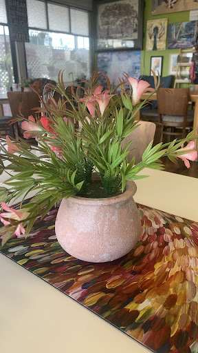 Read moreHubby and I had a scrumptious breakfast of poached eggs, bacon, grilled tomatoes, baby spinach and toasted sourdough. Bliss! They aren't stingy with the bacon either like many places. You can eat inside in air-conditioned comfort or outdoors. Service is fast and friendly and there's also a variety of beautiful hand crafted aboriginal items for sale. So pleased we stopped in. It's opposite the info centre in the side street. You can browse over your brochures over brunch. Big...